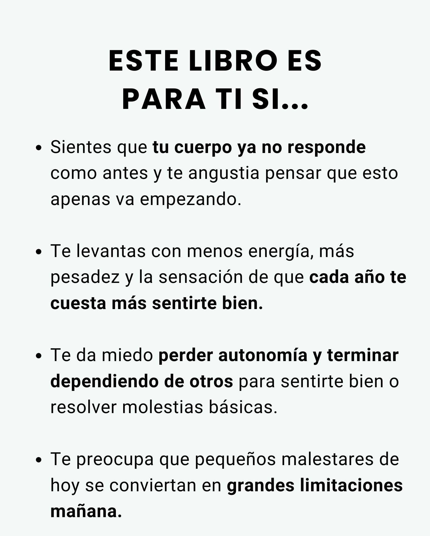 Es ideal para personas que quieren cuidarse de forma natural, sentirse mejor y envejecer con bienestar, sin depender únicamente de soluciones químicas.